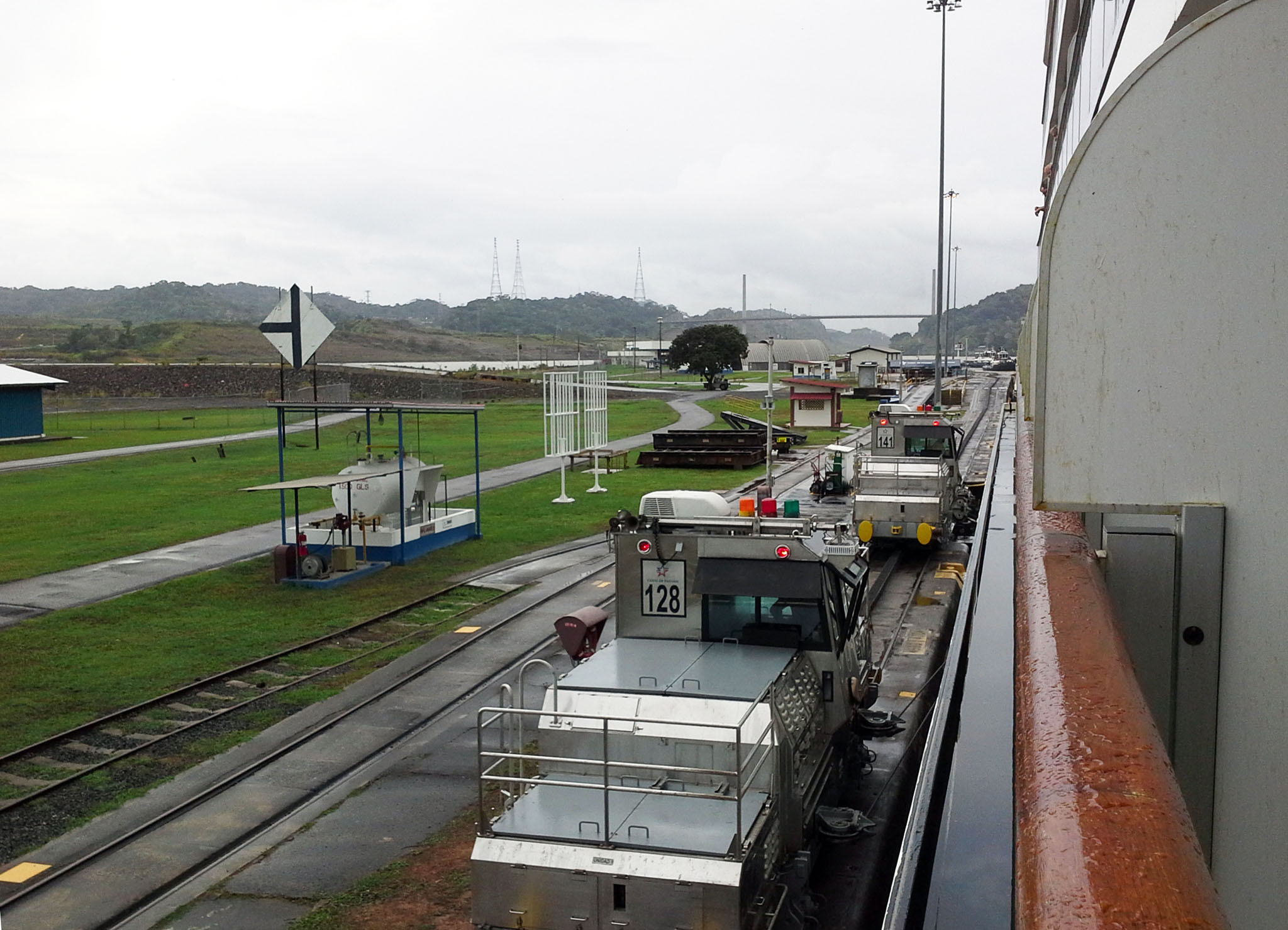 How narrow is Panama Canal? There is not much space between ship and the wall of canal. This is where Electric Mules / Locomotives excel; keeping ships and canal safe from damage.